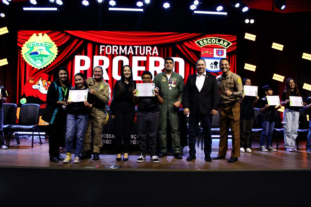 Durante a cerimônia, o deputado Gilson destacou a importância do programa desenvolvido pela Polícia Militar do Paraná, que tem transformado a vida de milhares de crianças e adolescentes em todo o estado, orientando-os sobre a prevenção ao uso de drogas e à violência.