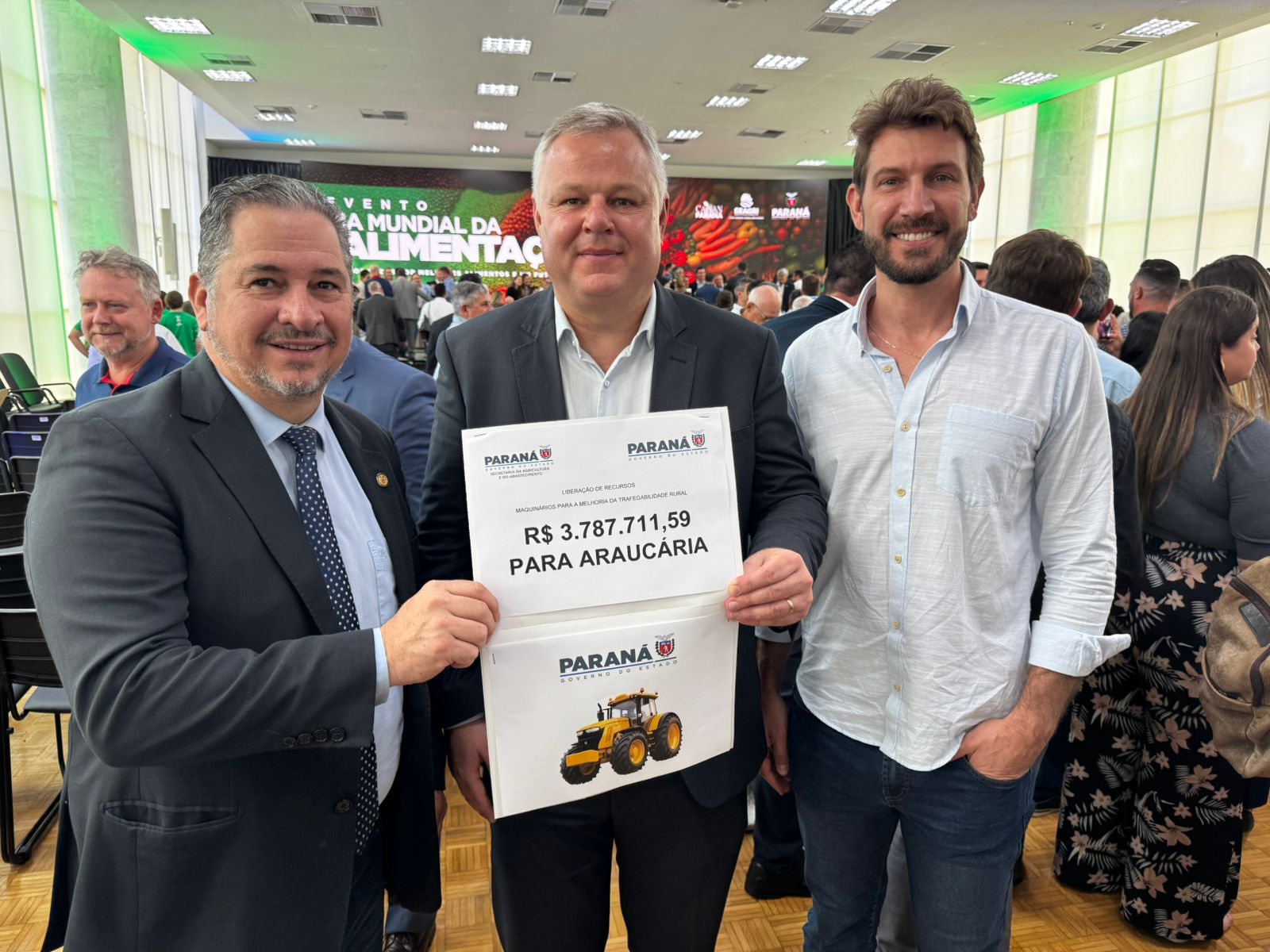 Na mesma cerimônia, o Governo do Estado assinou convênios que somam R$ 100 milhões com 27 municípios da Associação dos Municípios da Região Metropolitana de Curitiba (Assomec). O investimento tem como objetivo a aquisição de caminhões, retroescavadeiras, motoniveladoras, pás carregadeiras e outros equipamentos voltados à manutenção de estradas rurais e ao fortalecimento da produção agrícola.