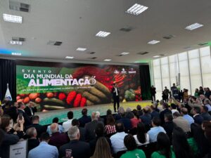 Durante o evento, o governador Ratinho Junior destacou que o Paraná vive um novo momento de desenvolvimento, com programas que unem produção, sustentabilidade e qualidade de vida. Estamos comemorando o Dia Mundial da Alimentação com o Paraná entre os estados que mais reduziram a insegurança alimentar do País. Nossos investimentos superam R$ 1 bilhão por ano, com programas como o Banco de Alimentos Comida Boa, Coopera Paraná e Mais Merenda. São ações que evitam o desperdício, fortalecem o agricultor familiar e garantem alimentação saudável nas escolas”, afirmou o governador.
