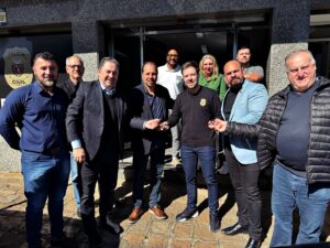 O deputado foi recebido pelo delegado Dr. Wagner Ferreira e por policiais de plantão que integram a equipe local. Também acompanharam a agenda o Pr. Almir de Paula, superintendente regional da Igreja do Evangelho Quadrangular (IEQ), o Pr. Ricardo Batarse, o Pr. Gilmar, da Igreja da Graça e representando o prefeito Maurício Rivabem, o Sr. Ary Stroparo.